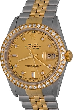 Case Material: Stainless Steel & 18k Yellow Gold custom 1.6 ct. Diamond bezel (36mm dia.)
