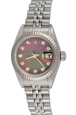 Case Material: Stainless Steel case with 18k White Gold fluted bezel (26mm dia.)