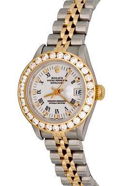 Case Material: Stainless Steel case with 18k Yellow Gold custom 2.15 ct. channel set Diamond bezel (26mm dia.)