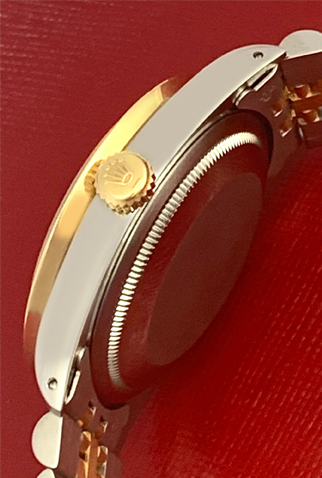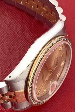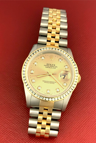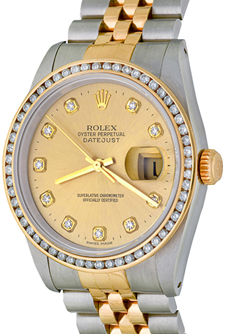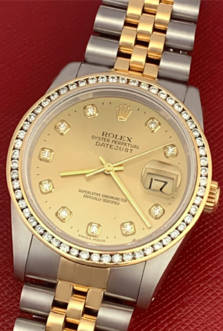 Case Material: Stainless Steel & 18k Yellow Gold custom 1.6 ct. channel set Diamond bezel (36mm dia.)