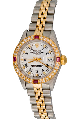 Case Material: Stainless Steel case with 18k Yellow Gold custom Diamond and Ruby bezel (26mm dia.)