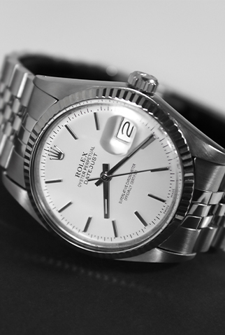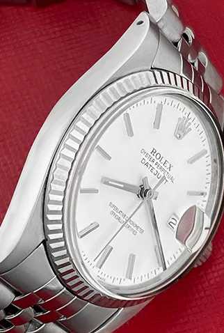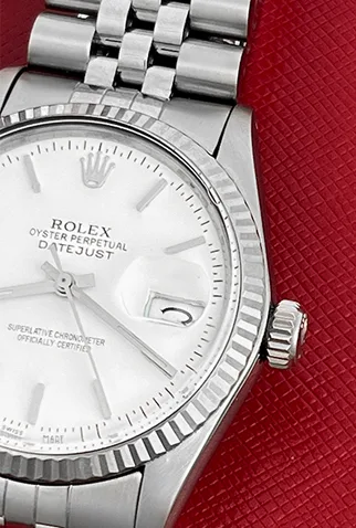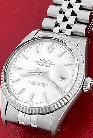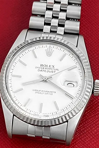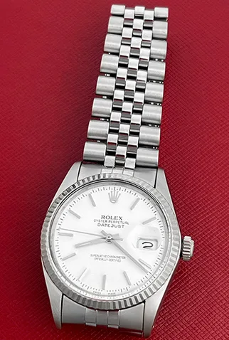 Case Material: Stainless Steel case with 14k White Gold fluted bezel (36mm dia.)