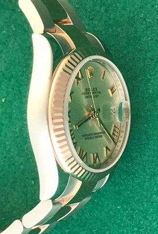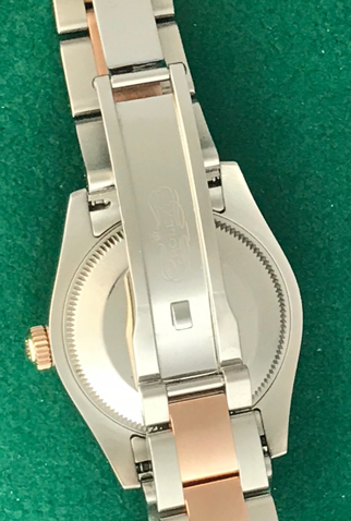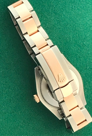 Case Material: Stainless Steel case with 18k Rose Gold fluted bezel (31mm dia.)
