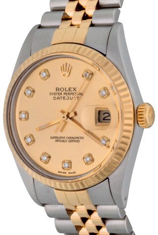 Case Material: Stainless Steel & 18k Yellow Gold fluted bezel (36mm dia.)