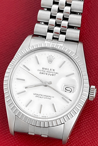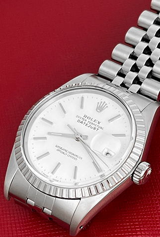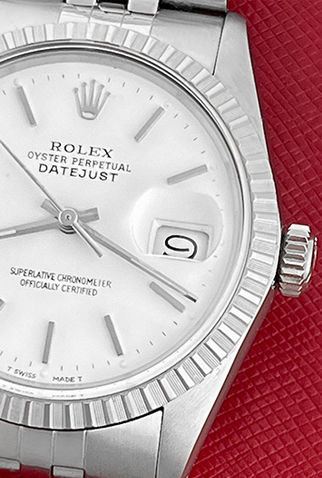 Case Material: Stainless Steel case with engine-turned bezel (36mm dia.)