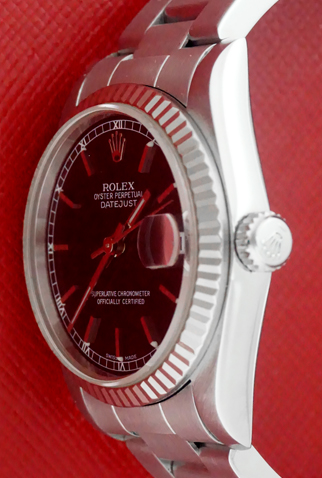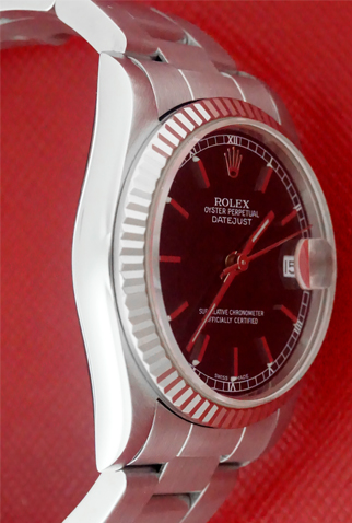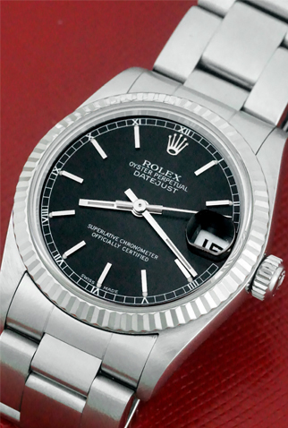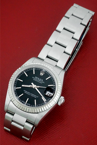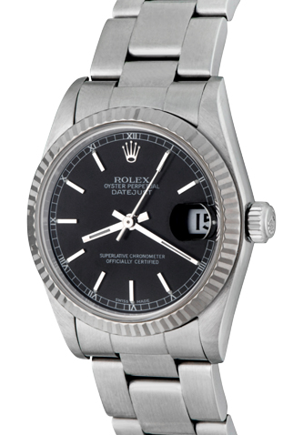 Case Material: Stainless Steel case with 18k White Gold fluted bezel (31mm dia.)