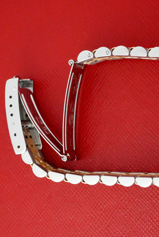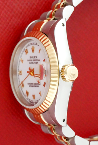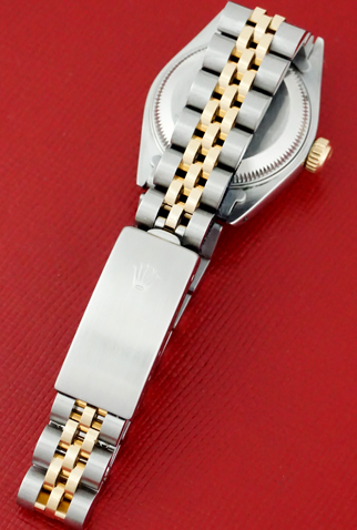 Case Material: Stainless Steel case with 18k Yellow Gold fluted bezel (26mm dia.)