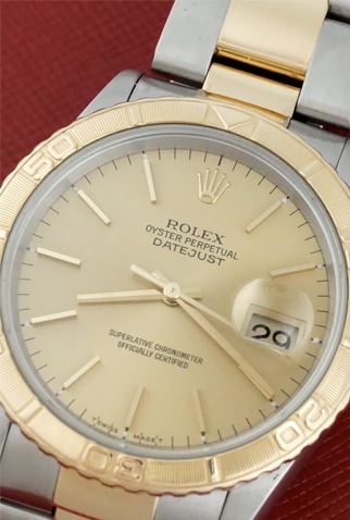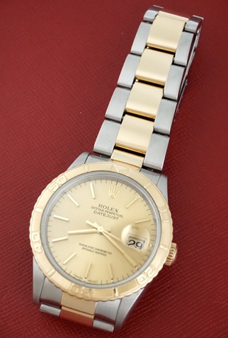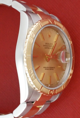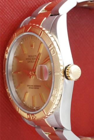 Case Material: Stainless Steel case with 18k Yellow Gold Thunderbird bezel (36mm dia.)