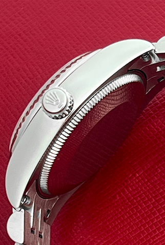 Case Material: Stainless Steel case with 18k White Gold fluted bezel (31mm dia.)