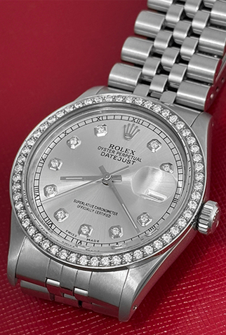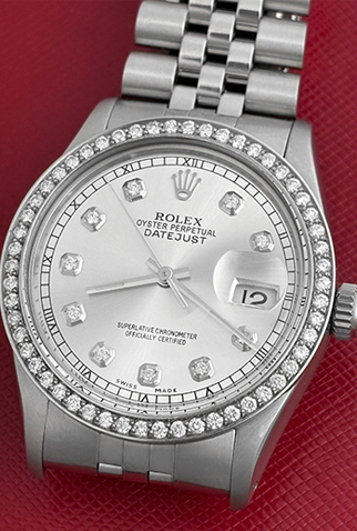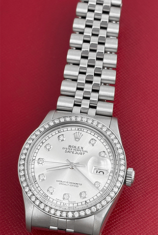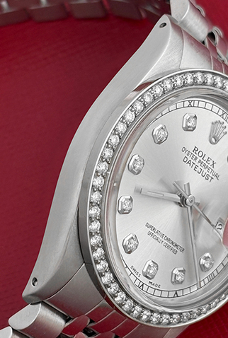 Dial: Oyster Silver Dial with custom Diamond hour markers