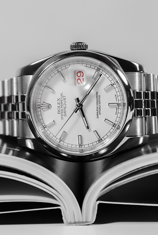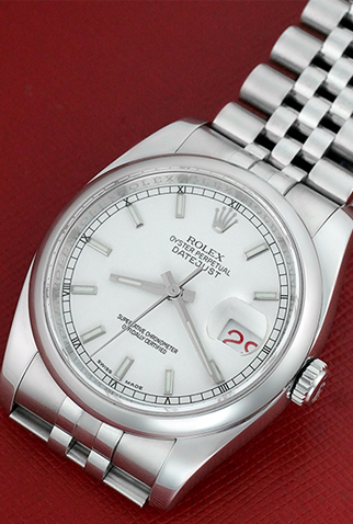 Dial: White Dial with luminous hour markers. Note: alternating “Red” & “Black” date