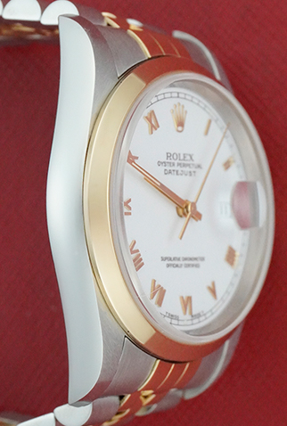 Dial: White Dial with Yellow Gold Roman numerals
