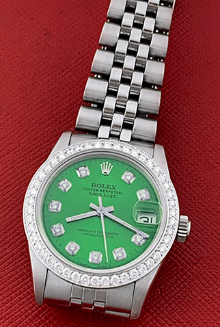 Dial: Green Dial with custom Diamond hour markers