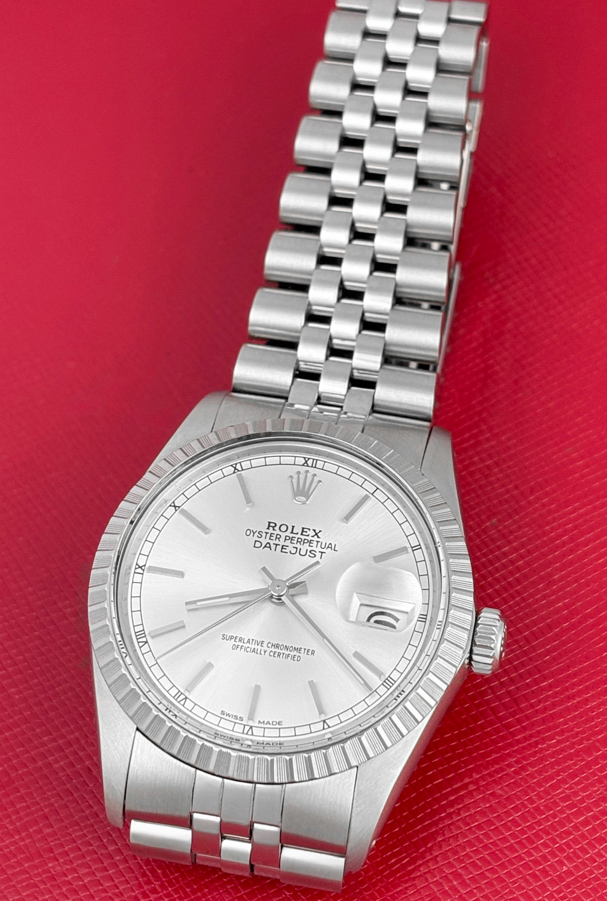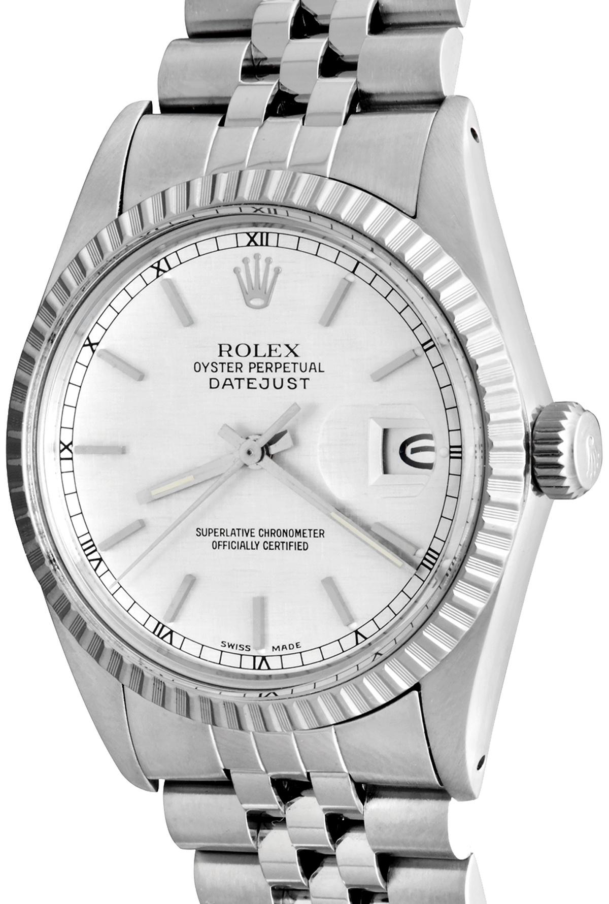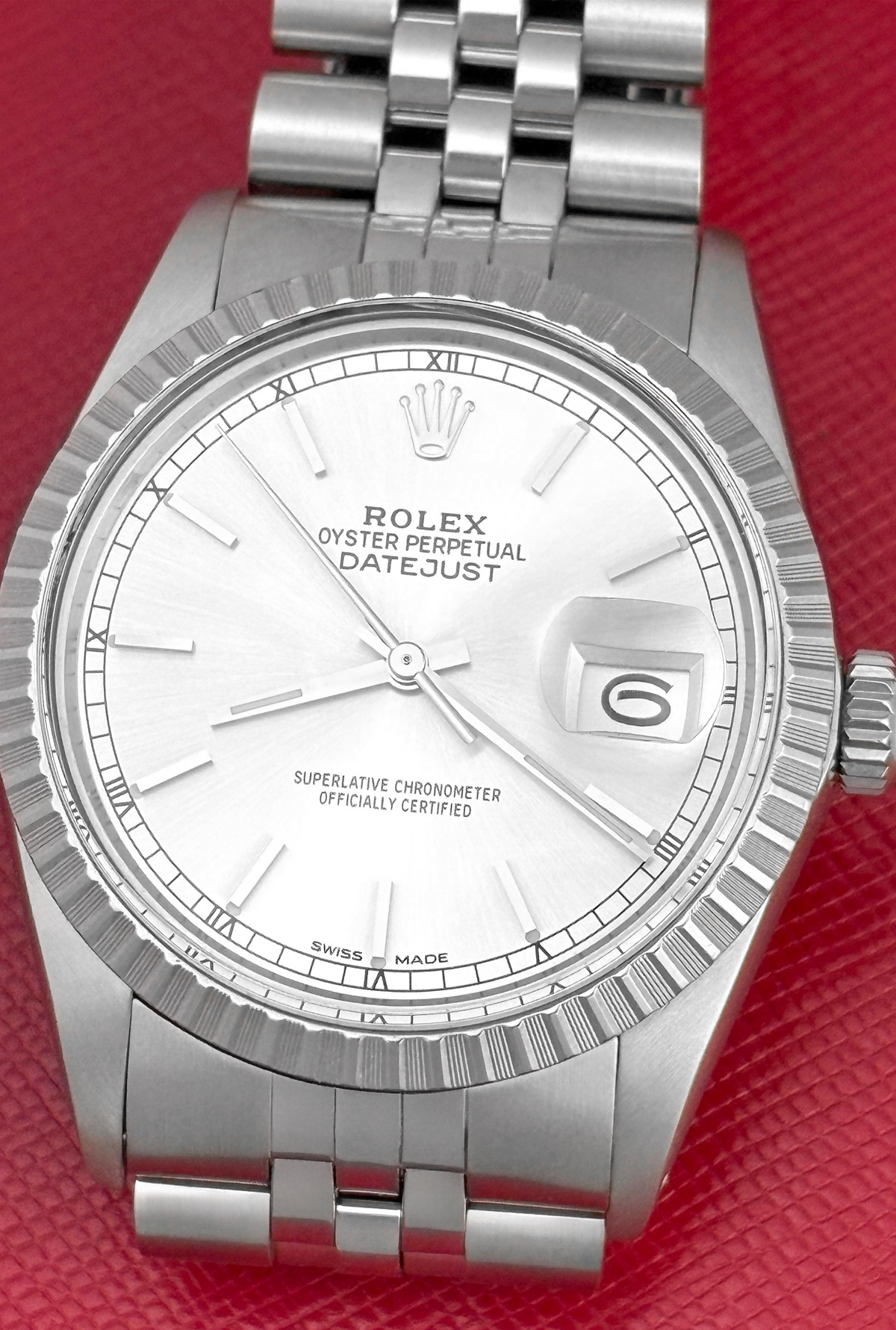 Case Material: Stainless Steel case with engine-turned bezel (36mm dia.)