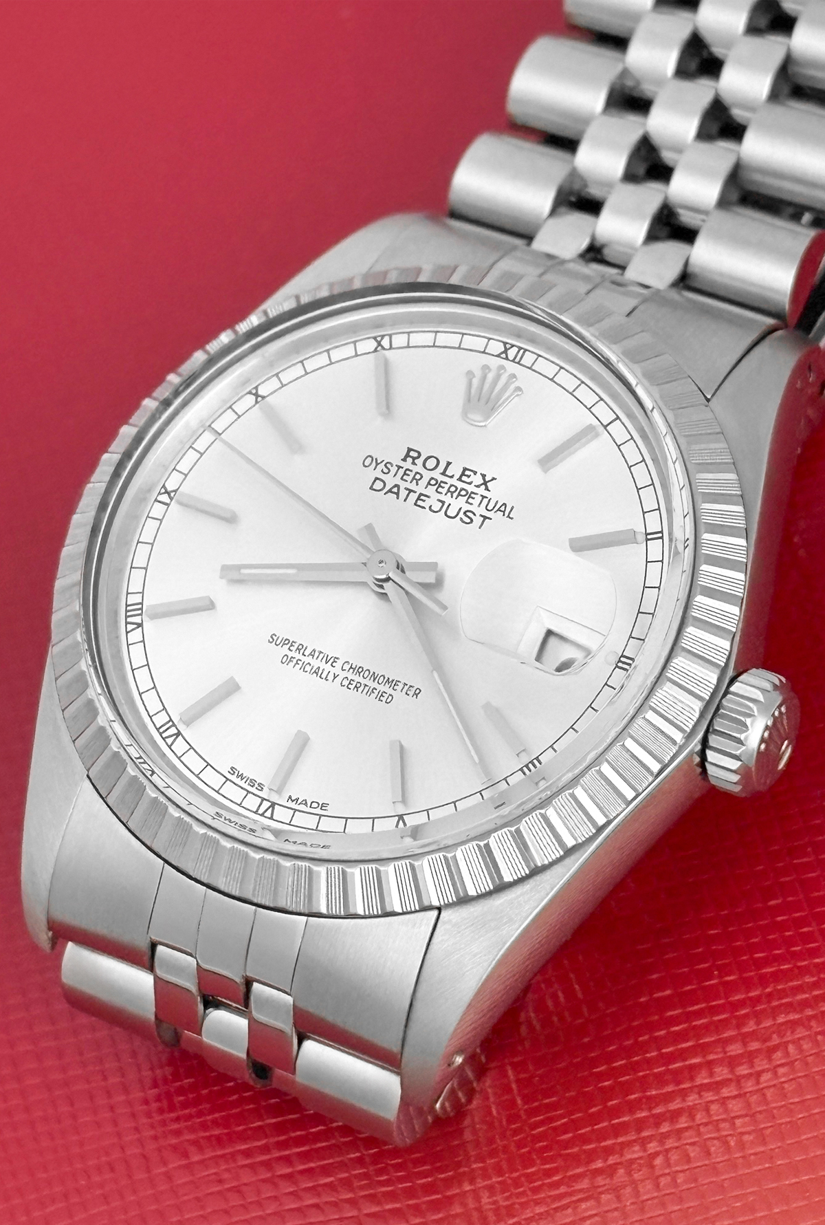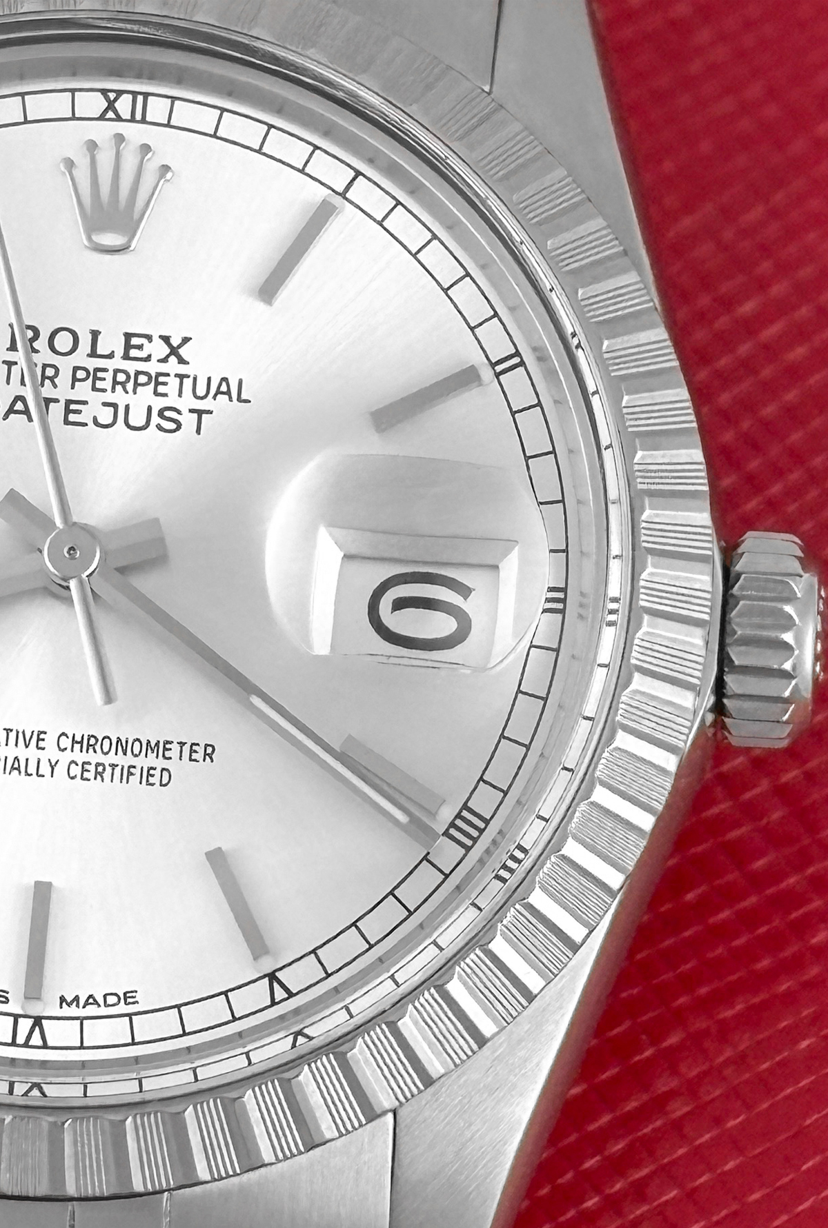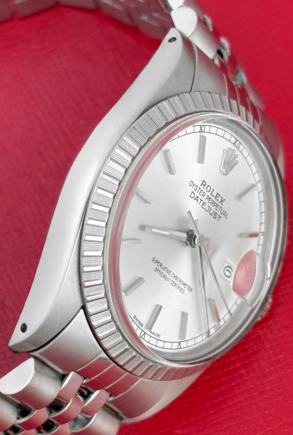 Case Material: Stainless Steel case with engine-turned bezel (36mm dia.)