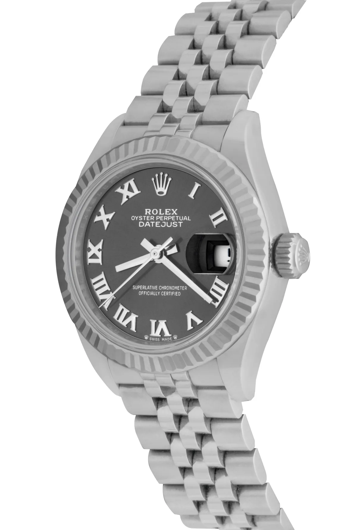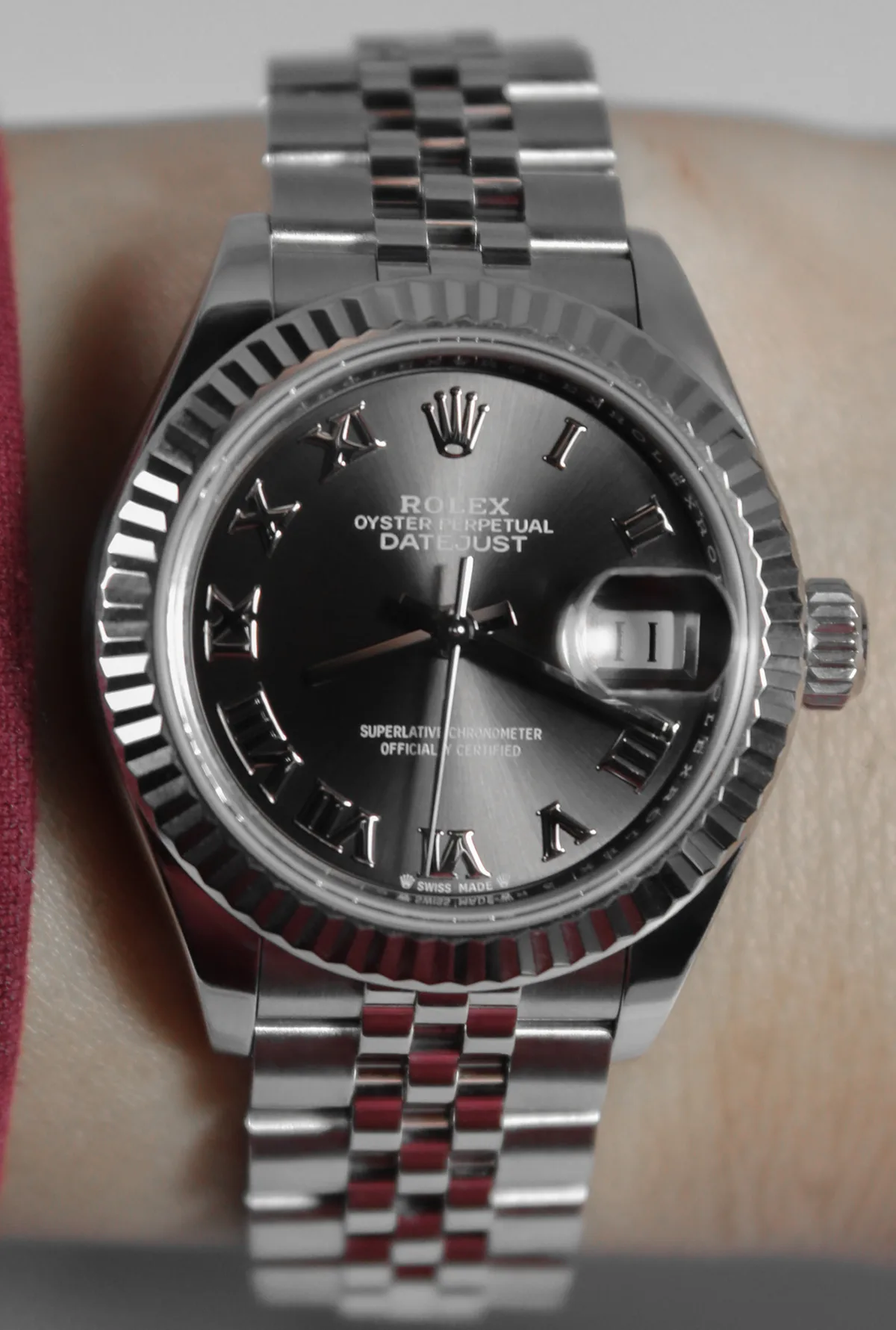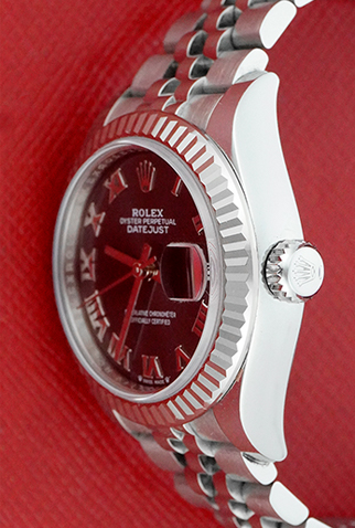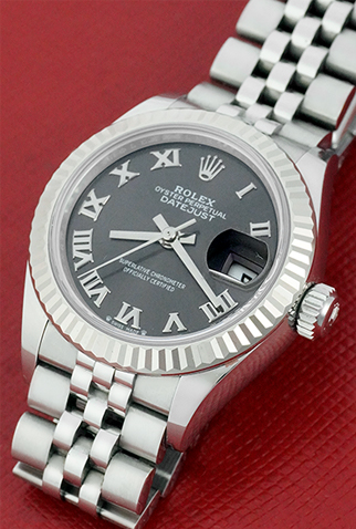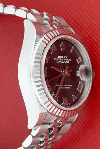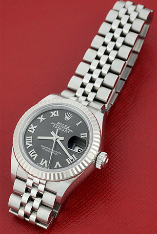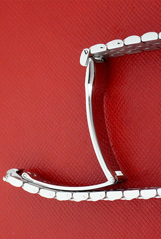 Case Material: Stainless Steel case with 18k White Gold fluted bezel (28mm dia.)