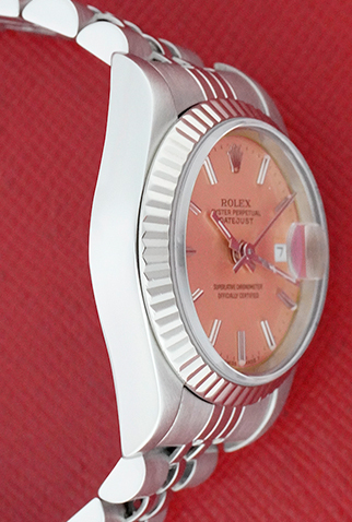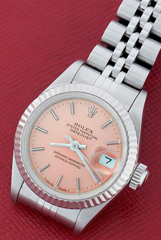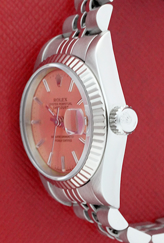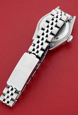 Case Material: Stainless Steel case with 18K white gold fluted bezel (26mm dia.)