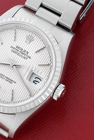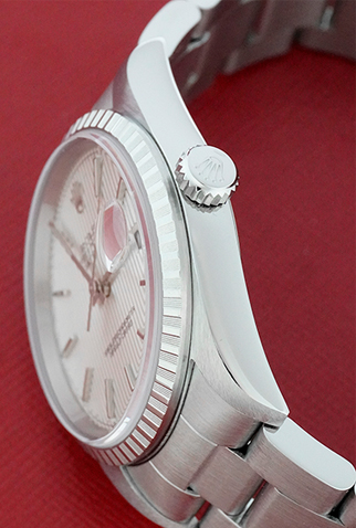 Dial: Oyster Silver Tapestry Dial with polished hour markers