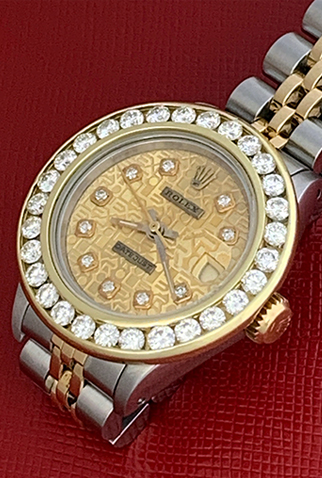 Dial: Champagne Rolex Jubilee Dial with custom Diamond hour markers