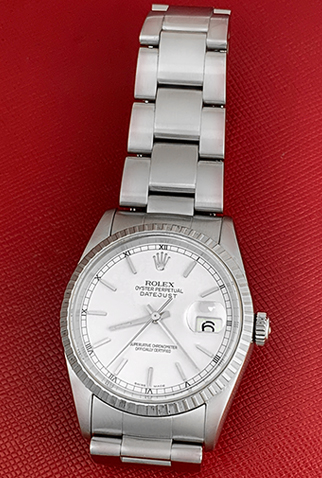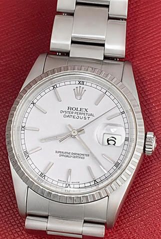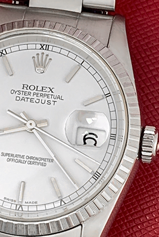 Case Material: Stainless Steel case with engine-turned bezel (36mm dia.)