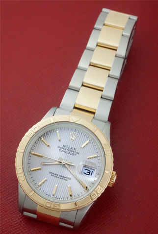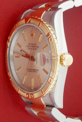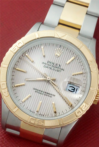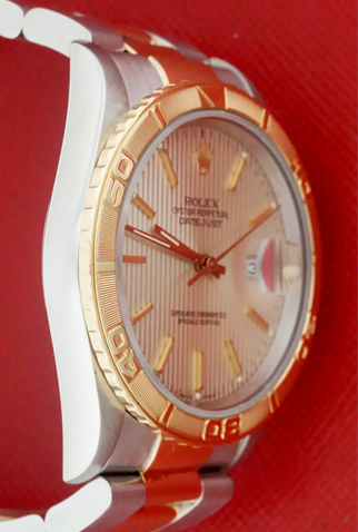 Case Material: Stainless Steel case with 18k Yellow Gold Thunderbird bezel (36mm dia.)