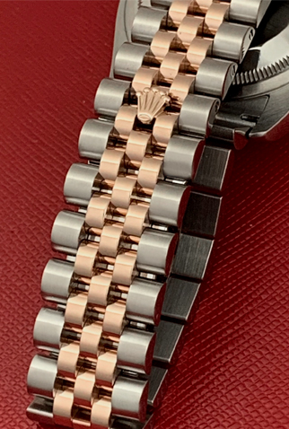 Bracelet: Stainless Steel & 18k Rose Gold hidden clasp Jubilee bracelet