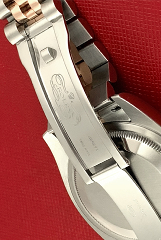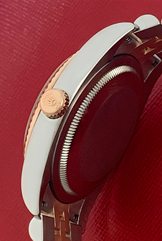 Case Material: Stainless Steel case with 18k Rose Gold fluted bezel (36mm dia.)