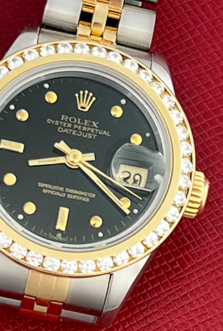 Dial: Black Dial with yellow gold hour markers
