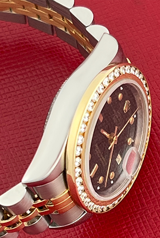 Case Material: Stainless Steel case with custom 1.1 ct. channel set Diamond Bezel (26mm dia.)