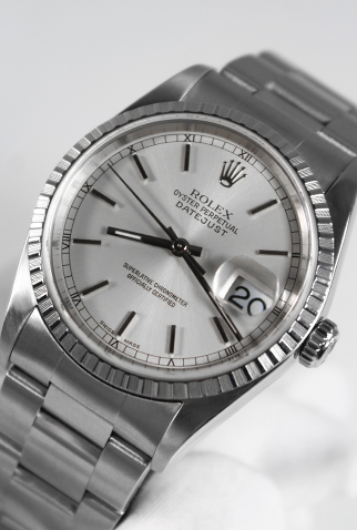 Case Material: Stainless Steel case with engine-turned bezel (36mm dia.)