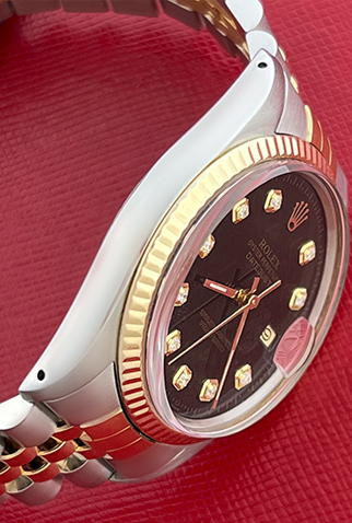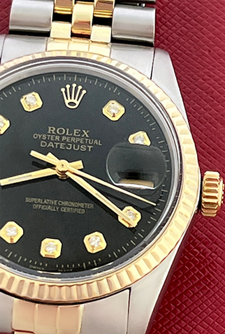 Case Material: Stainless Steel case with 18k Yellow Gold fluted bezel