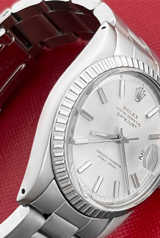 Case Material: Stainless Steel case with engine-turned bezel (36mm dia.)