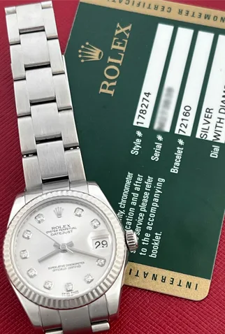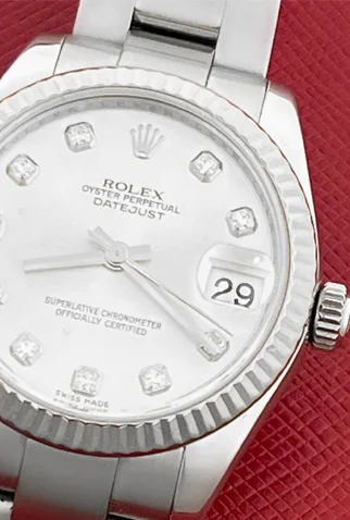 Dial: Silver Rolex Dial with Rolex Diamond hour markers