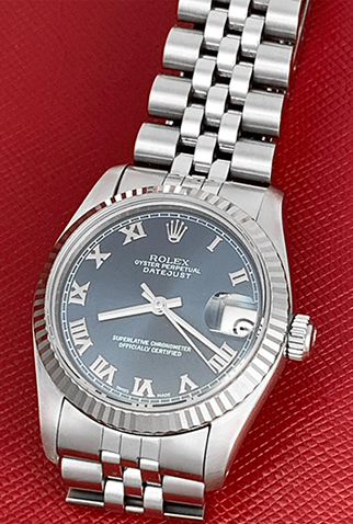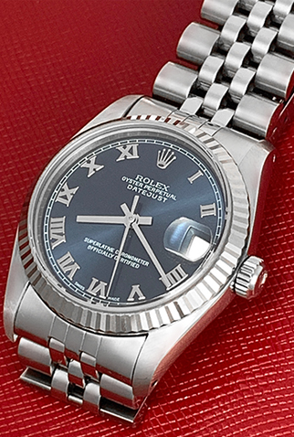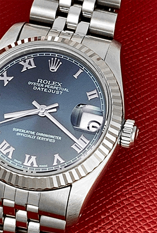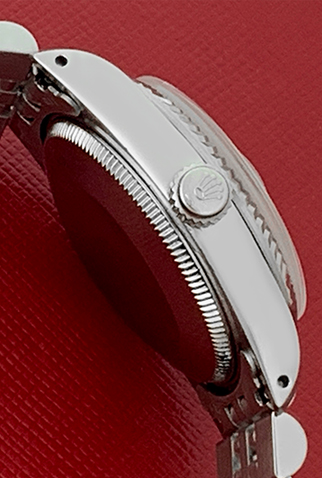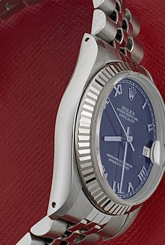 Case Material: Stainless Steel case with 18k White Gold fluted bezel (31mm dia.)