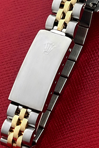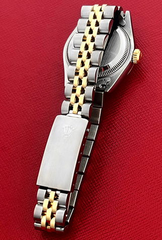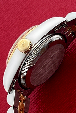 Case Material: Stainless Steel case with 18k Yellow Gold smooth bezel (26mm dia.)