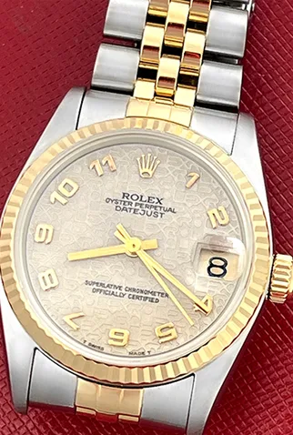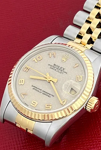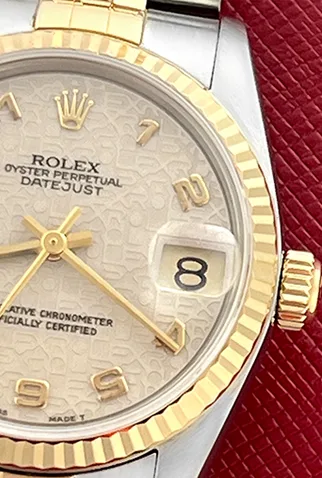 Dial: Ivory Rolex Jubilee Dial with yellow gold Arabic numerals