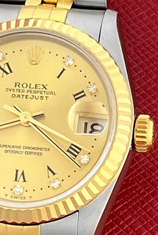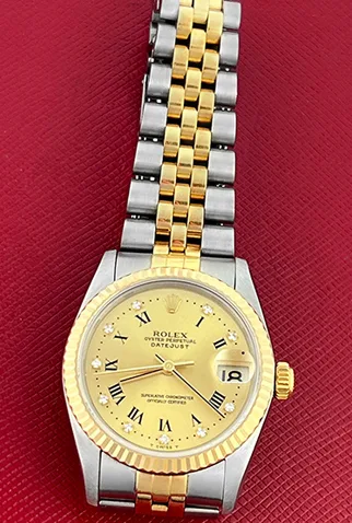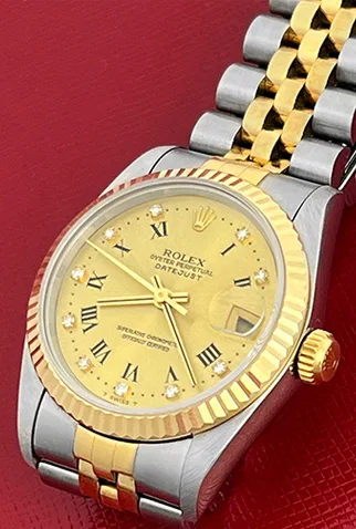 Dial: Champagne Dial with black Roman & Rolex Diamond hour markers