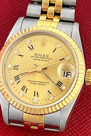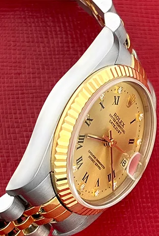 Dial: Champagne Dial with black Roman & Rolex Diamond hour markers