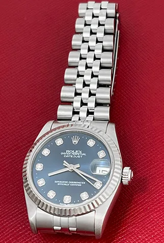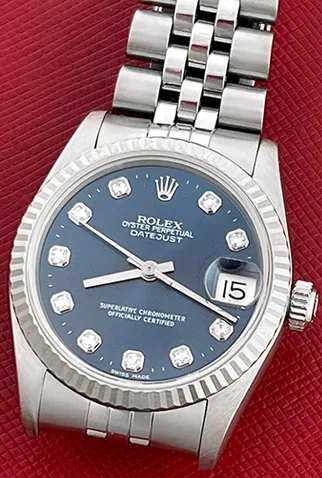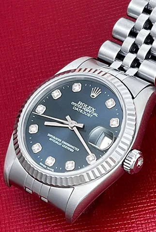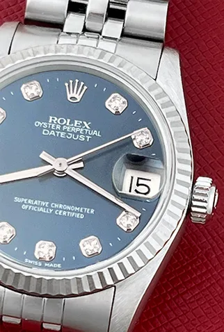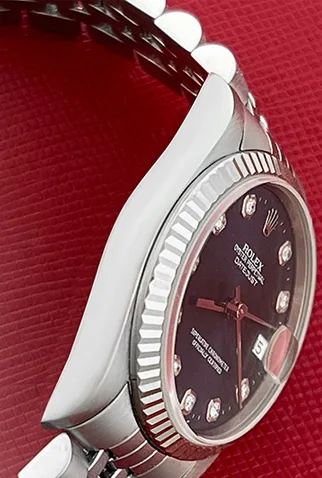 Case Material: Stainless Steel case with 18k White Gold fluted bezel (31mm dia.)