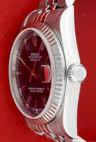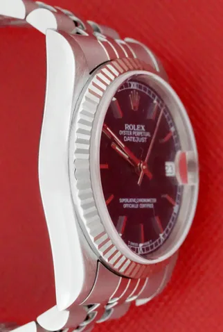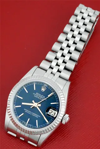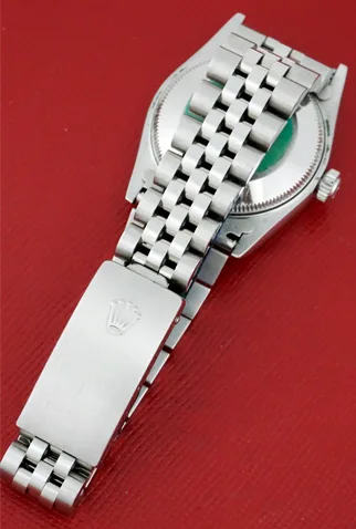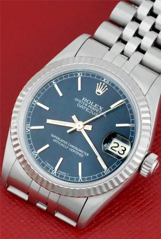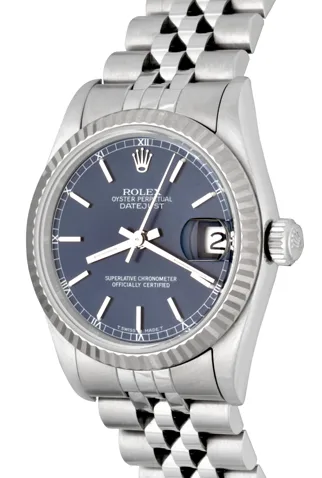 Case Material: Stainless Steel case with 18k White Gold fluted bezel (31mm dia.)