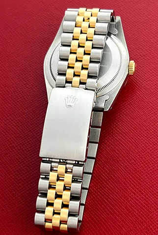 Case Material: Stainless Steel case with 18k Yellow Gold fluted bezel (36mm dia.)