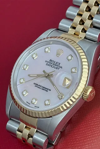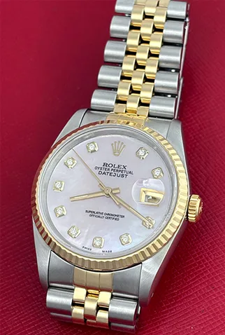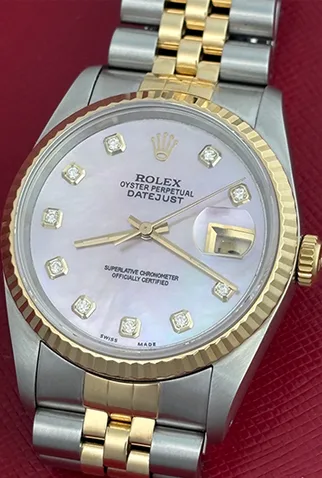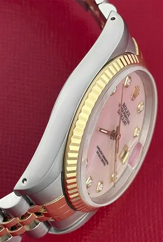 Dial: Pink custom Mother of Pearl with custom Diamond hour markers
