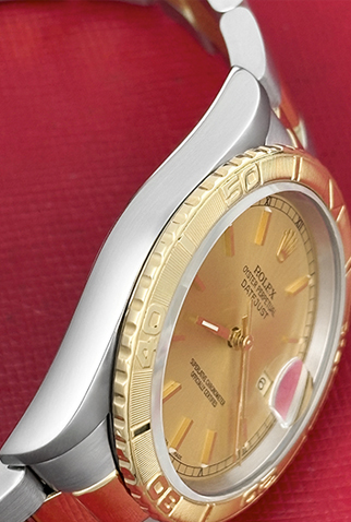 Case Material: Stainless Steel case with 18k Yellow Gold Thunderbird bezel (36mm dia.)
