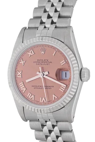 Case Material: Stainless Steel case with 18k White Gold fluted bezel (31mm dia.)