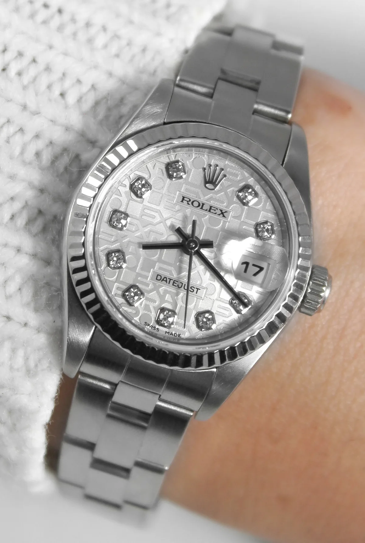 Dial: Oyster Silver Rolex Jubilee Dial with Rolex Diamond hour markers