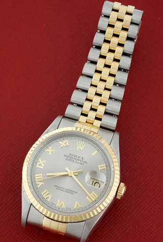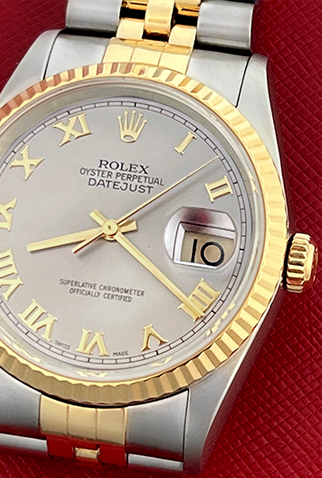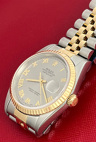 Dial: Silver Slate Dial with yellow gold Roman numerals