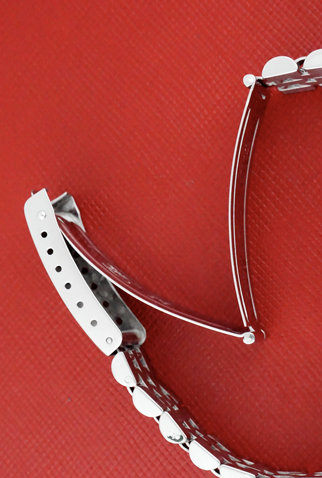 Case Material: Stainless Steel case with 14k White Gold fluted bezel (36mm dia.)