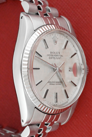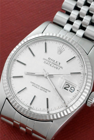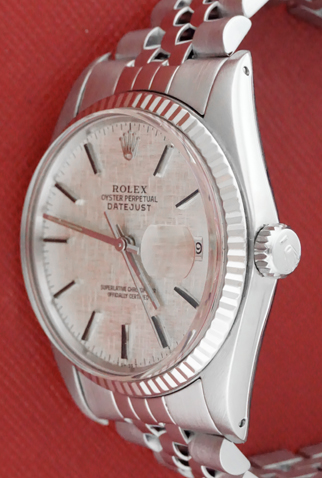 Dial: Oyster Linen Silver Dial with polished hour markers