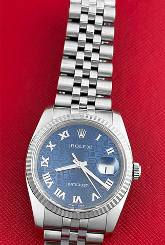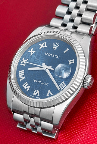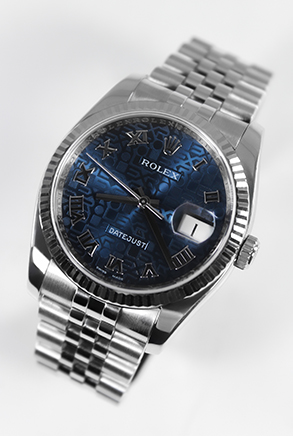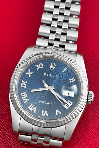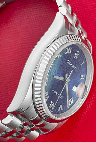 Dial: Slate blue Rolex Jubilee Dial with polished Roman numerals
