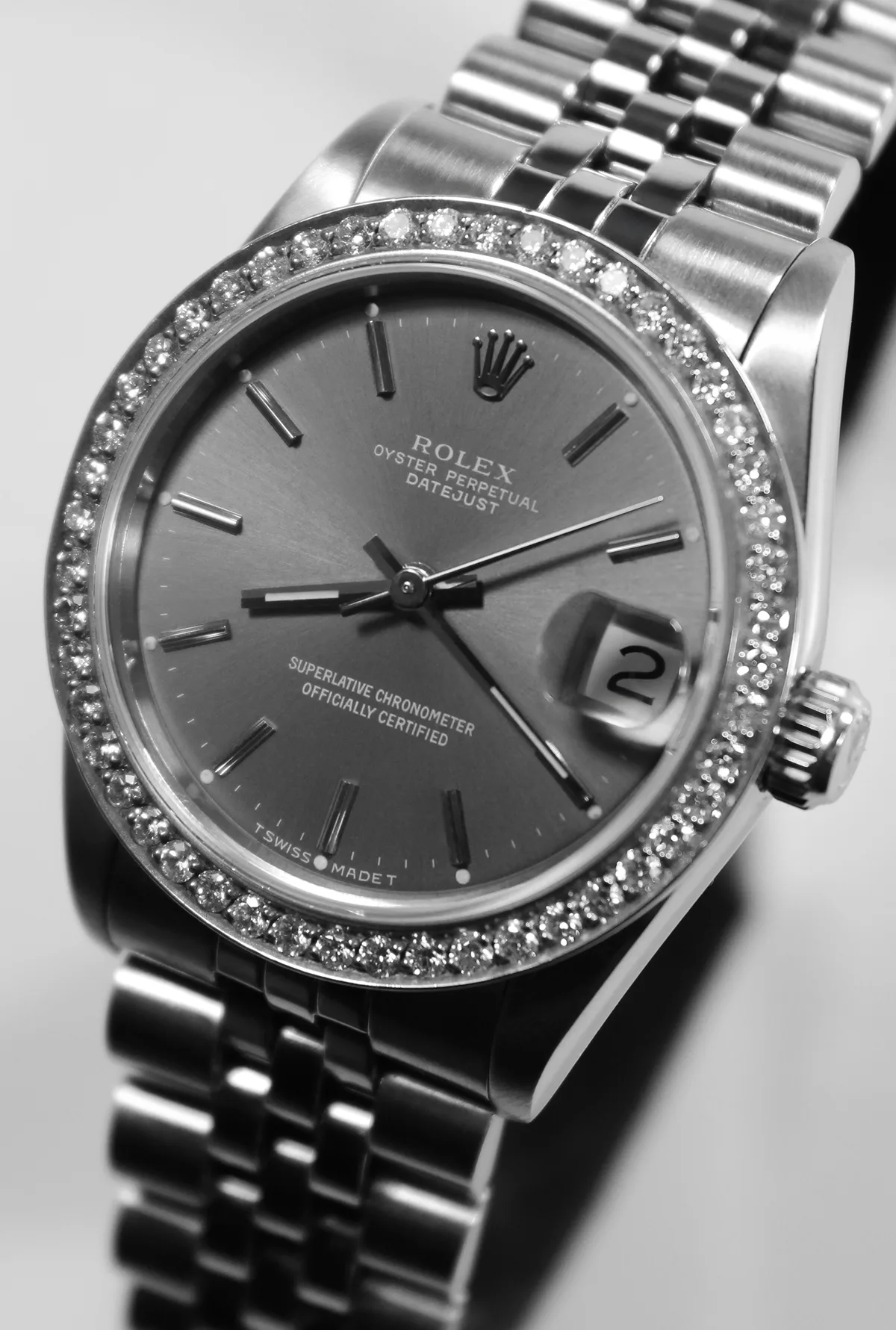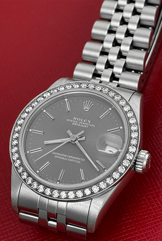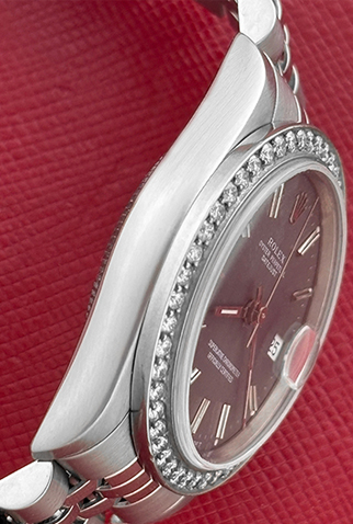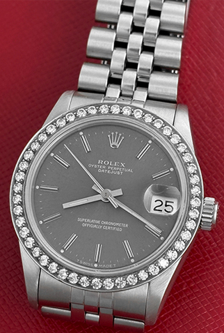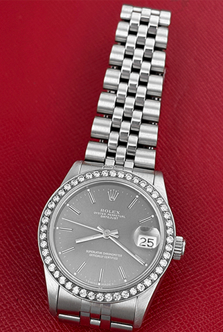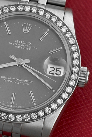Case Material: Stainless Steel case with 18k White Gold 1.1 custom Diamond bezel (31mm dia.)